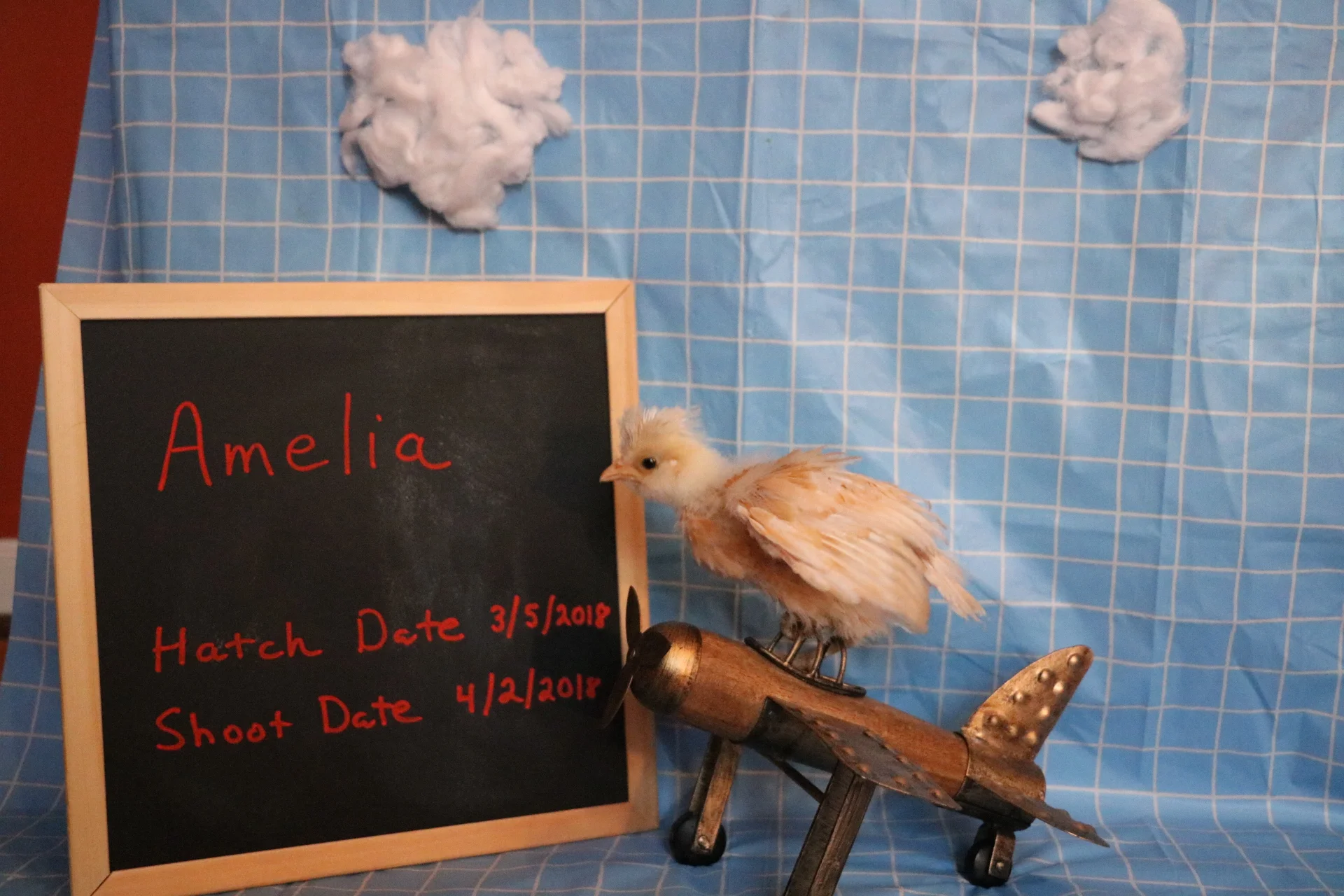 Little Amelia is still smaller than a few of her younger brooder mates, but what she lacks in size she more than makes up in attitude. Perhaps it's her head plumage that gives her the incessant "you lookin' at me?" stare, but she's always making you aware that she sees you. Her favorite activity is climbing out of the brooder via The Arm Highway, speeding her way up to chirp chirp in an ear. She's incredibly social and likes to greet the newest chickies as they emerge from the feed store container. Her latest trick is to flap her patchy (at best) feathered wings to take a short vertical launch off the ground; she has no fear of heights.