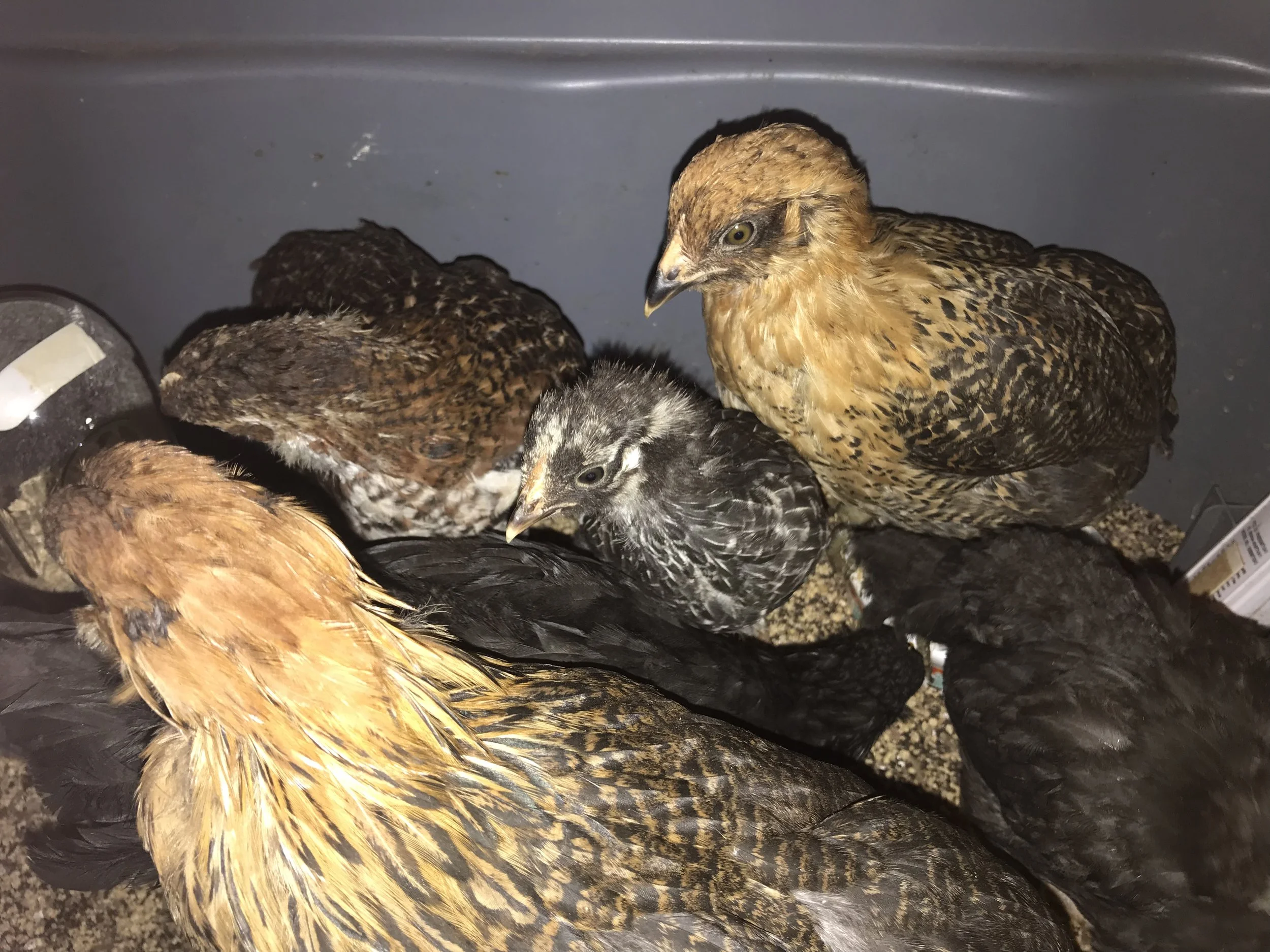 Our littlest two, Willow and Dahlia, being 2 weeks behind the rest of the group aren’t quite big enough to attack the ramp to the roosting area or have enough feathers for cooler nights. Don’t get me wrong, they have spunk for days: joining the chickie mosh pits, zooming around stealing mealworms, and claiming the sunniest spots for themselves.
